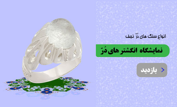 دُرّ نجف علاوه بر رنگ و طبع منحصر به فردی که دارد و همچنین فارغ از سفارشهایی که از حضرات معصومین دربارهی استفاده از آن به ما رسیده، یک ویژگی مهم دیگر هم دارد. امروزه یکی از پرچمهای اختصاصی محبین امیرالمؤمنین علیه السلام، در دست داشتن انگشتر درّ نجف است.