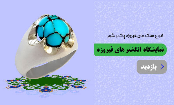 فیروزه یکی دیگر از سنگهای پرآوازه و پرطرفداریست که در صنعت انگشترسازی مورد استفاده قرار میگیرد. فیروزه جزو معدود سنگهای جواهری است که بر خلاف عقیق و یاقوت و …، نور را از خود عبور نمیدهد اما بدلیل ویژگیهای برجستهای که دارد، جزو سنگهای جواهری به شمار میآید. فیروزه نیز مثل عقیق به لحاظ نقش و رنگ خود به تنوعهایی مانند فیروزه پاک، فیروزه تار عنکبوتی، فیروزه شجر و … تقسیمبندی میشود. همچنین به لحاظ تنوع محل استخراج به فیروزهی عجمی، فیروزه نیشابور، فیروزه مصری و فیروزه آمریکایی تقسیم میشود. فیروزهها در هر یک از معادن و مناطقی که ذکر شد دارای طیف وسیعی از کیفیت، طبع و رنگ است اما بطور کلی میتوان ادعا کرد فیروزههایی که از معادن نیشابور استخراج میشوند از تمام فیروزههای دنیا ارزشمندتر هستند.
