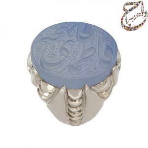 انگشتر عقیق کبود یمنی حکاکی خطی (فاطمه بهجة قلبی) رکاب شبکه استاد امامی