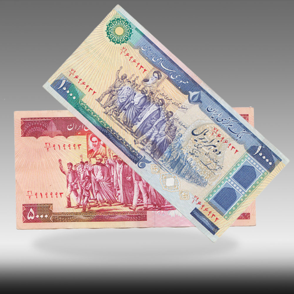 مجموعه سهگانه اسکناس ۵ هزار ریال ایران با پشتهای متفاوت