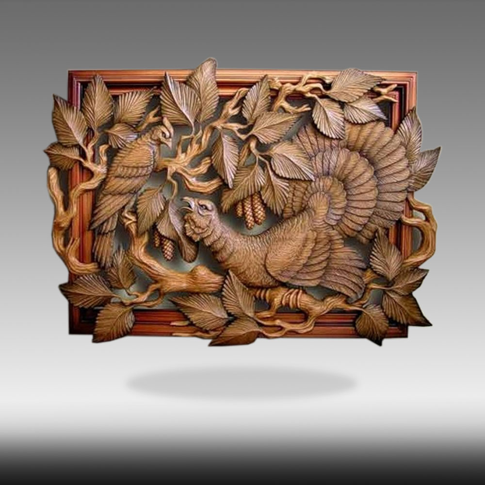تابلوی چوبی یک تکه منبت کاری طرح و ان یکاد