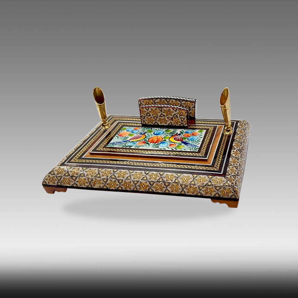 قلمدان خاتم کاری و نقاشی طرح گل و مرغ
