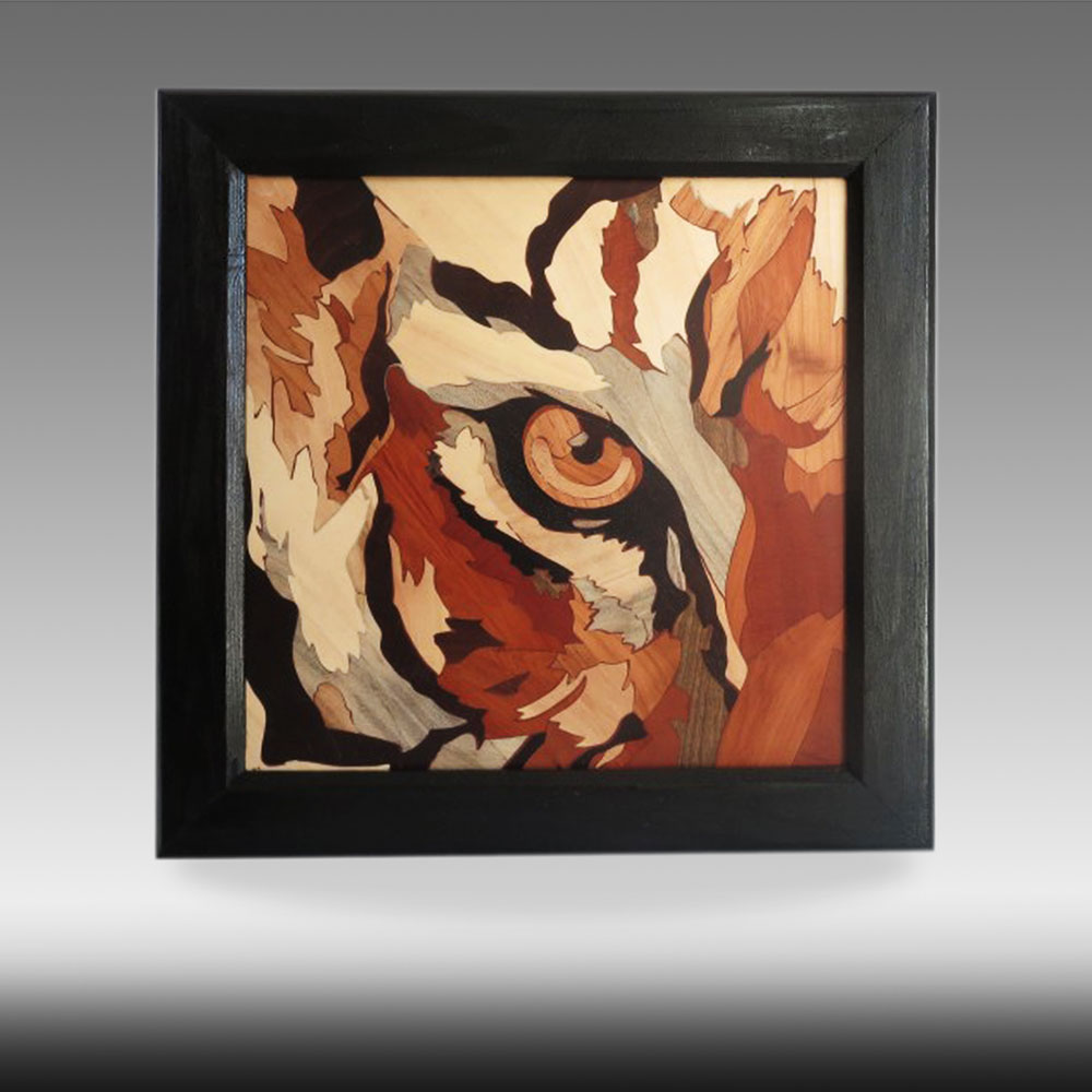 تابلو چوبی معرقکاریشده با نوشته: «محو چشمان تو بودم که به دام افتادم»