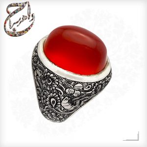 انگشتر عقیق سرخ قلمزنی استاد ساعی ، رکاب نقره