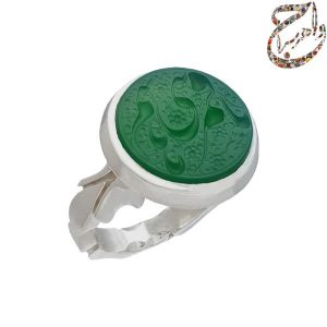 انگشتر عقیق سبز خطی رکاب دست ساز