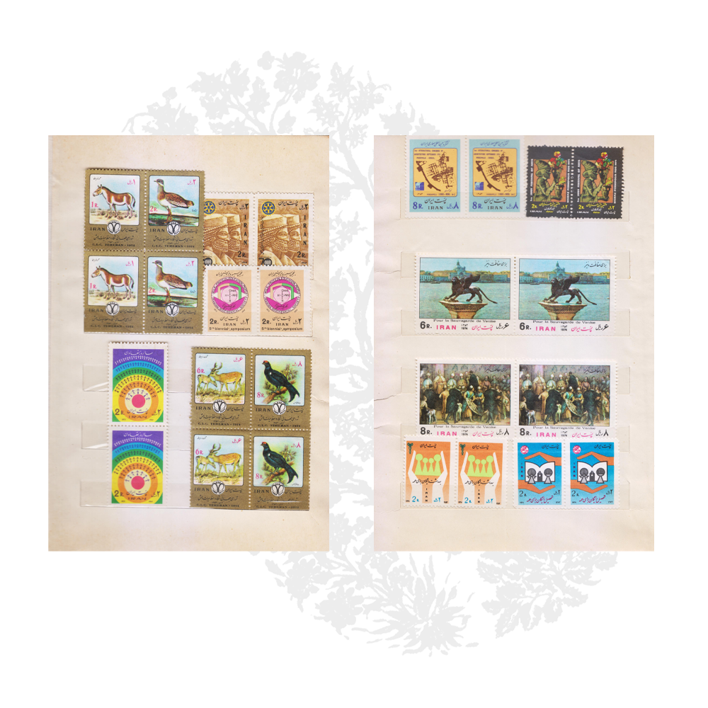 این آلبوم شامل مجموعهای کمنظیر از تمبرهای دوره پهلوی است که در قالب 16 برگ کامل نگهداری شدهاند. تمبرها با موضوعات متنوع و با طراحیهای جذاب فرهنگی، سیاسی، ورزشی و اجتماعی گردآوری شدهاند.این مجموعه نهتنها از نظر تاریخی ارزشمند است، بلکه به دلیل بلوک بودن تمبرها، از دید کلکسیونرها نیز جایگاه ویژهای دارد.