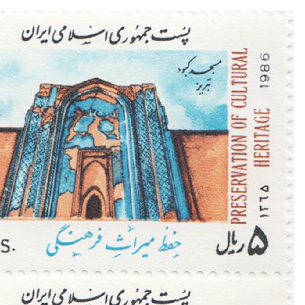 این تمبر با موضوع حفظ میراث فرهنگی در سال 1365 شمسی (1986 میلادی) توسط ایران منتشر شده است. ارزش اسمی آن 5 ریال است و تصویر بنایی تاریخی با کاشیکاریهای آبی و فیروزهای را نمایش میدهد که مسجد کبود است و یکی از اثار تاریخی تبریز را نشان میدهد. این تمبر، ارزش فرهنگی و تاریخی را یادآوری میکند و نشاندهنده اهمیت حفظ بناهای باستانی در ایران است.