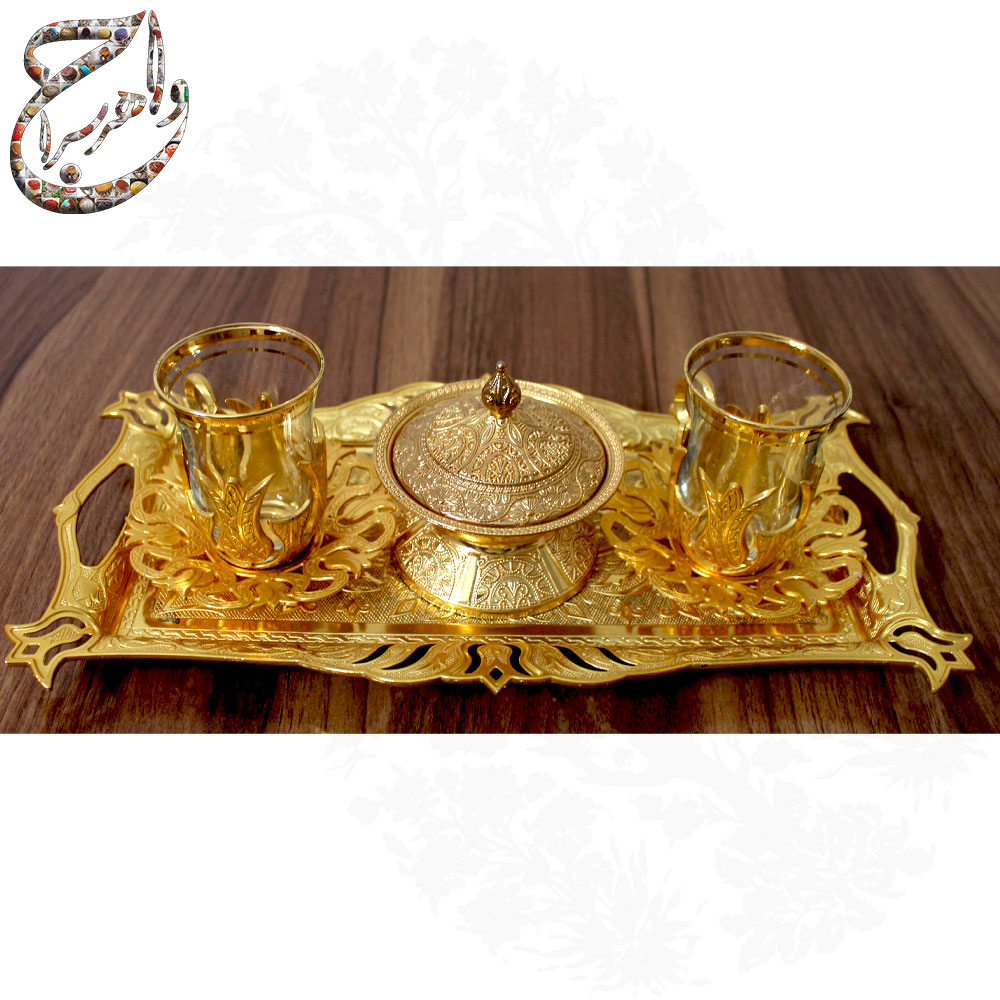 نقد و بررسی : سرویس چای خوری دو نفره برنج با آبکاری طلا