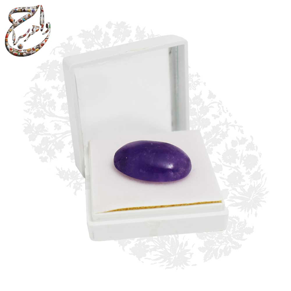 این نگین زیبا از جنس آمیتیست طبیعی (کوارتز بنفش) است و با تراش دامله (Cabochon) صیقلی و خوشفرم آمادهی ساخت انگشتر میباشد. سنگ آمیتیست بهدلیل رنگ بنفش درخشان و شفافیت خیرهکنندهاش از محبوبترین سنگهای نیمهقیمتی در میان علاقهمندان به سنگهای طبیعی است.