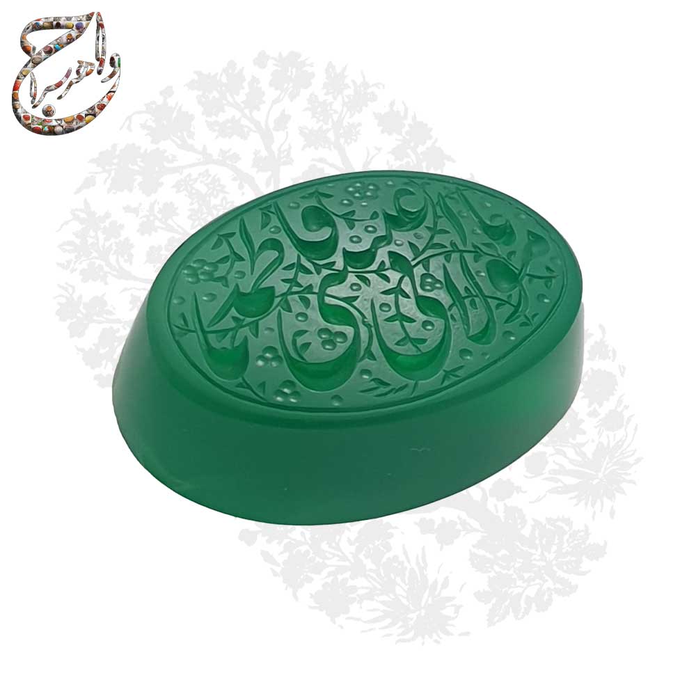 عقیق سبز آبدار خراسانی حکاکی دستی «یا مولاتی یا فاطمه اغیثینی»