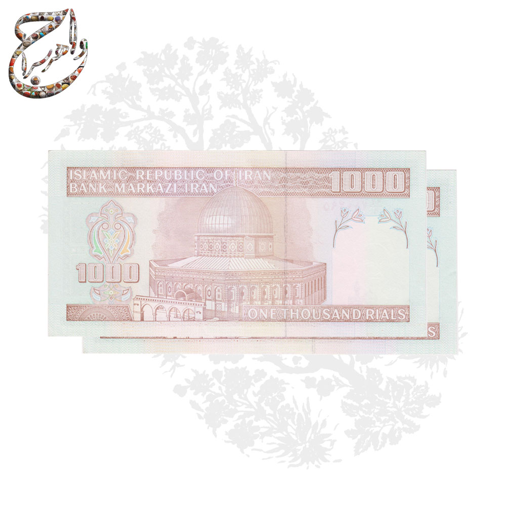 این جفت اسکناس 100 تومانی (1000 ریالی) یکی از اسکناسهای پرارزش و شناختهشده تاریخ معاصر ایران است. طراحی این اسکناسها بهخوبی ارزشهای فرهنگی و مذهبی ایران را به تصویر میکشد. در یک سمت اسکناس، تصویر امام خمینی (ره)، رهبر انقلاب اسلامی، قرار دارد که نماد نقش رهبری ایشان در تاریخ معاصر ایران است. در سمت دیگر، نمایی از مسجدالاقصی، واقع در بیتالمقدس، یکی از مهمترین اماکن مقدس مسلمانان، به چشم میخورد که نشاندهنده پیوند عمیق ایران با جهان اسلام و حمایت از مسئله فلسطین است.