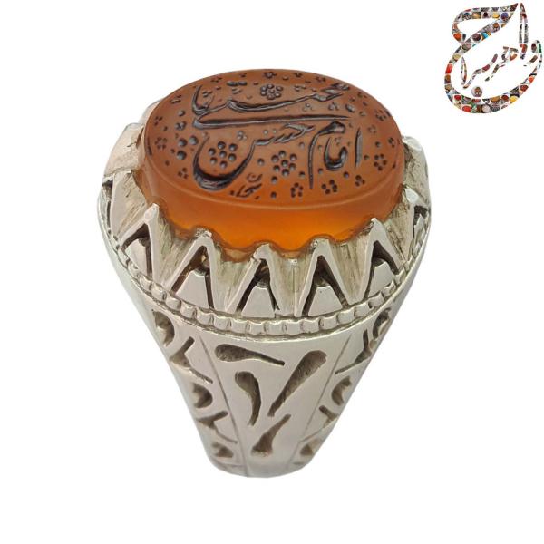 انگشتر عقیق پرتقالی خط سبحان