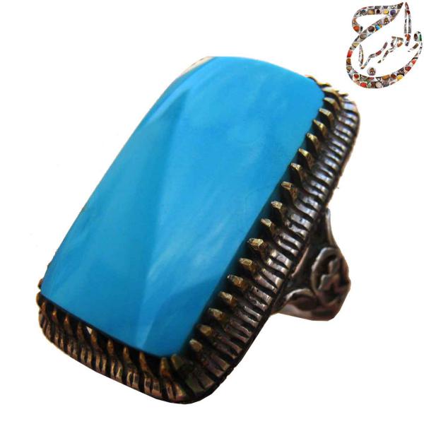 انگشتر فیروزه نیشابور تراش تخت بدون حکاکی . رکاب نقره دست ساز با مهر سازنده به وزن 35.1 گرم و سایز 63 با قابلیت تغییر سایز.