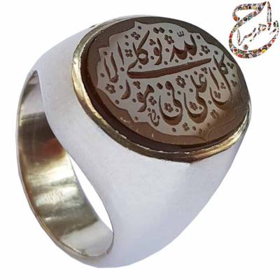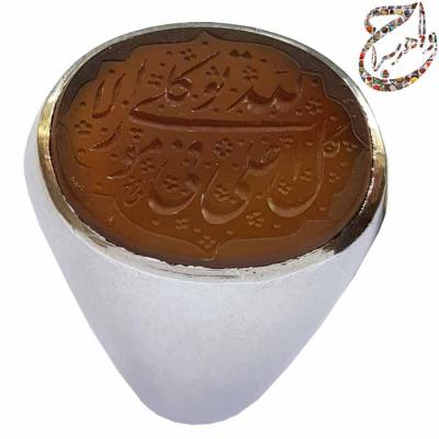فروش انگشتر جزع یمنی خطی استاد مرحوم فرج مزین به علی الله فی کل الامور توکلی با رکاب دست ساز پنبه در جواهرسرا فروشگاه بزرگ اینترنتی تخصصی سنگ و جواهرات فاخر زینتی ، عرضه کننده ی انگشتر ، گردن آویز ، بج سینه و دست بندهای نقره ، فدیوم و استیل مردانه و زنانه