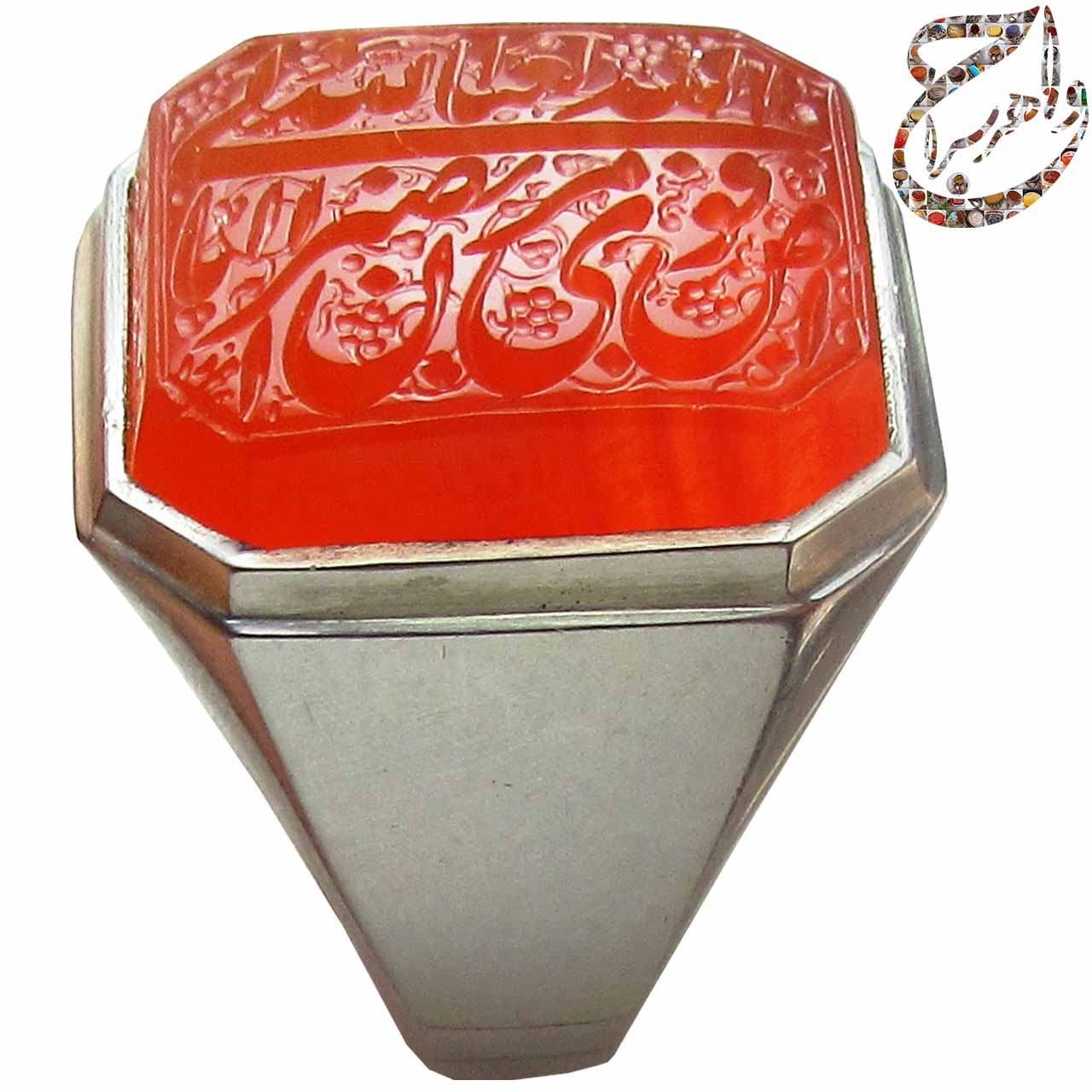عقیق یمنی حکاکی استاد سید مجتبی آتش باز با امضاء میرزا در جوارسرا رکاب دست ساز این اثر از جنس نقره ساخته و عرضه گردیده است .