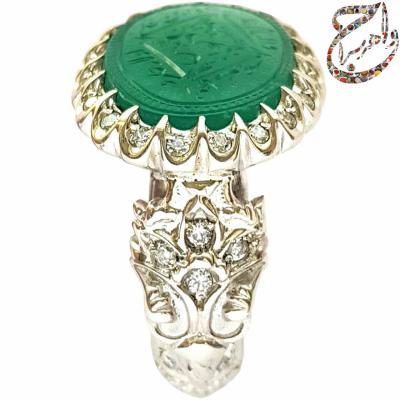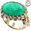 فروش انگشتر فوق العاده عقیق سبز خط دکتر مدنی مزین به چهارسلام زیارت عاشورا با رکاب صفوی مرصع استاد بردیا مظهری در جواهرسرا فروشگاه بزرگ اینترنتی تخصصی سنگ و جواهرات فاخر زینتی ، عرضه کننده ی انگشتر ، گردن آویز ، بج سینه و دست بندهای نقره ، فدیوم و استیل مردانه و زنانه