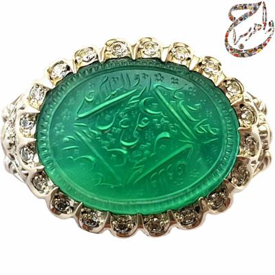 عقیق سبز خط مدنی رکاب مرصع استاد مظهریa367jw