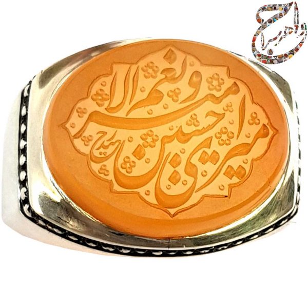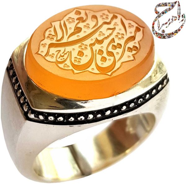 فروش انگشتر عقیق پرتقالی خط احمد رکاب استاد افتخاری در جواهرسرا فروشگاه بزرگ اینترنتی تخصصی سنگ و جواهرات فاخر زینتی ، عرضه کننده ی انگشتر ، گردن آویز ، بج سینه و دست بندهای نقره ، فدیوم و استیل مردانه و زنانه