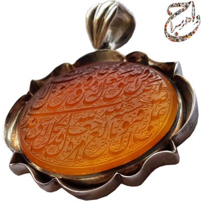 گردن آویزنفیس عقیق درشت و پاک یمنی حکاکی ممتاز حاج رضا قربانی خط حر