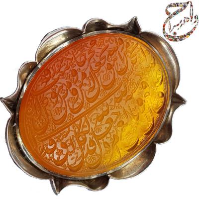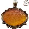 فروش گردن آویز کارگاه طهران آذری با نگین عقیق پرتقالی خط استاد رضا قربانی با امضاء حرّ مزین به آیه شریفه ی و من یتق الله در جواهرسرا فروشگاه بزرگ اینترنتی تخصصی سنگ و جواهرات فاخر زینتی ، عرضه کننده ی انگشتر ، گردن آویز ، بج سینه و دست بندهای نقره ، فدیوم و استیل مردانه و زنانه