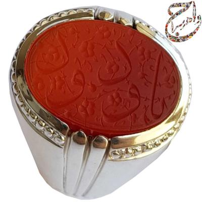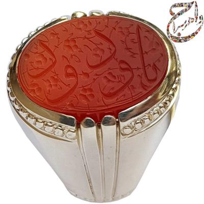 فروش انگشتر عقیق سرخ یمنی خط استاد مدنی مزین با ذکر توحیدی یا ودود با رکاب دست ساز صدفی استاد افتخاری در جواهرسرا فروشگاه بزرگ اینترنتی تخصصی سنگ و جواهرات فاخر زینتی ، عرضه کننده ی انگشتر ، گردن آویز ، بج سینه و دست بندهای نقره ، فدیوم و استیل مردانه و زنانه