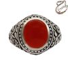 انگشتر عقیق یمنی پرتقالی تراش دامله بدون حکاکی . رکاب نقره دو تکه دست ساز به شیوه ی خاک ماسه توسط استاد حمید جنگی با مهر جنگی به وزن 12.9 گرم و سایز 63 با قابلیت تغییر سایز و قلمزنی دستی حمید جنگی.