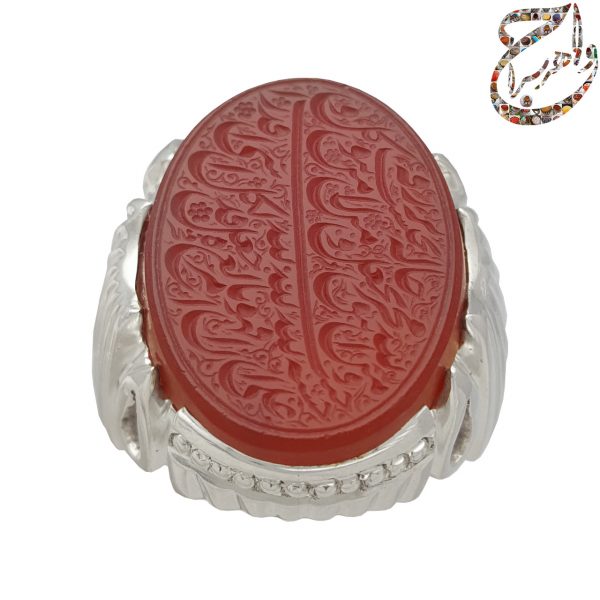 انگشتری که پیش روی شماست از عقیق یمنی خط استاد فخر مزین به آیه شریفه ی رزق و روزی گشته است . رکاب انگشتر از جنس نقره توسط استاد محمد افتخاری به شیوه ی دست ساز ساخته و در فروشگاه بزرگ اینترنتی جواهرسرا عرضه شده است .
