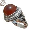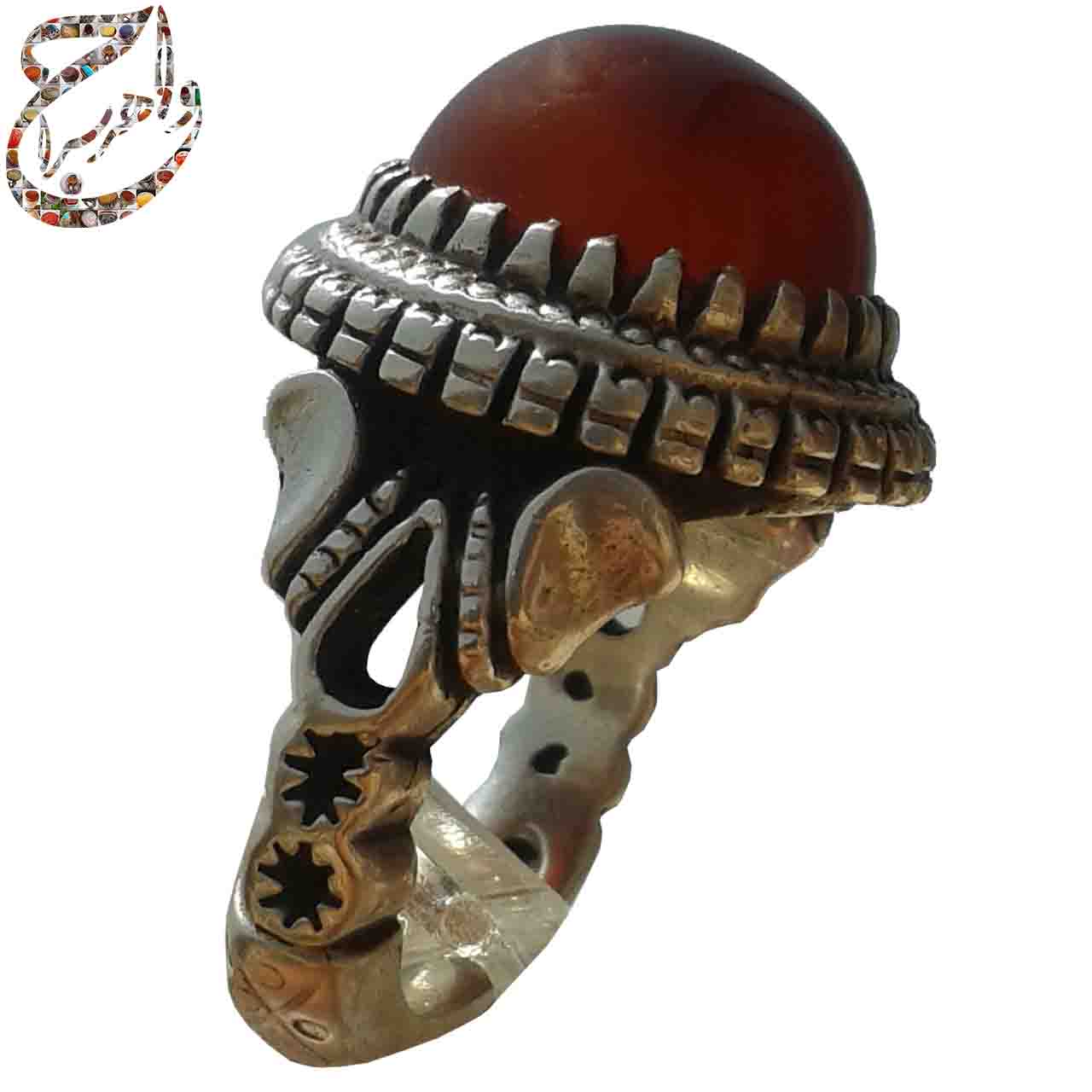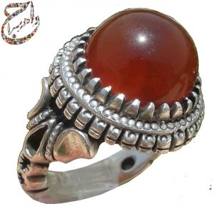 یکی از این اساتید استاد رسول تهران است که کمتر کسی نام ایشان را نشنیده و یا آثار ایشان را ندیده است . اگر چه رکاب های تقلبی رسول تهران و احمد ری و اسفندیار خسروی و … در بازار به تعداد نا محدودی وجود دارد و به فروش میرسد اما ارزش یک کار دست صد ها برابر یک کار تقلبی است ولو این که در ظاهر هیچ تفاوتی بین آن دو نتوان قائل شد .[/vc_column_text][vc_empty_space height=”20px”][/vc_column][/vc_row][vc_row][vc_column][vc_column_text]انگشتری که مشاهده میفرمایید حاصل تلاش استاد رسول تهران با مهر استاد در رکاب است که از جنس نقره به شیوه ی دست ساز و مدل صفوی و گوارسه ها و چنگ های گرد نگین عقیق دامله ساخته شده است .