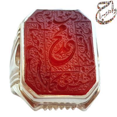 چرا که عالم بالا سراسر مملو از کمال سیرت حضرتش گردیده و آسمان ها از زیبایی صورتش روشن گشته و تمام وجودش از صفات حسنه سرشار و صلوات مومنان و مومنات تا قیام قیامت به همراهش است.عقیق یمنی سرخ