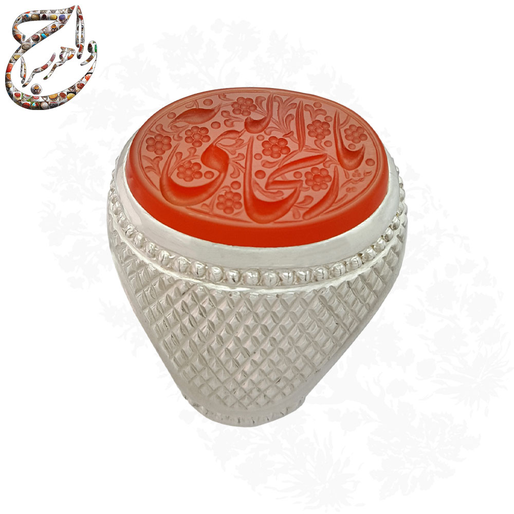 انگشتر عقیق سرخ خراسانی حکاکی یا ریحانه النبی رکاب دست سازa150jw