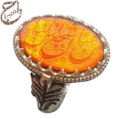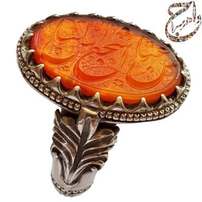 عقیق یمنی پرتقالی حکاکی استاد مدنیa155jw