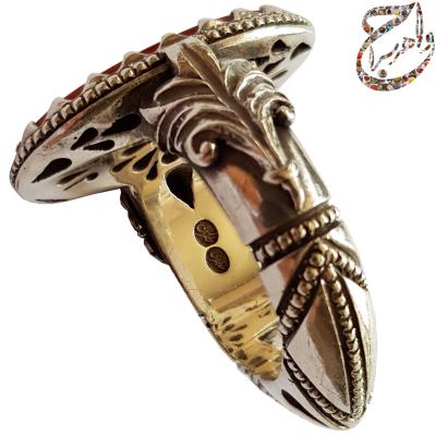 جمله ای میان انگشتر ساز ها و بنک داران سنگ و جواهر معروف است که میگویند یا رکاب را دست ساز و گران قیمت انتخاب کنید و یا نگین را چرا که اگر هر دو از ارزش ریالی بالایی برخوردار باشند دیر فروش میروند . اما گروه جواهرسرا معتقد است در ساخت انگشتر باید سلایق زیادی را در نظر گرفت . اگرچه سلایق محدود ، دیر به دیر سراغ محصول می آیند اما ما وظیفه داریم برای هر سلیقه ای محصول طراحی و تولید نماییم .[/vc_column_text][vc_empty_space height=”20px”][/vc_column][/vc_row][vc_row][vc_column][vc_column_text]انگشتری که در حال تماشای آن هستید حاصل تلاش و هنر دست استاد سید مهدی مدنی با امضاء س م است . این اثر حکاکی ماندگار استاد مدنی منقش به روایت اشجع الناس عباس میباشد . تذهیب اطراف خط ، عمق حکاکی و همچنین نازکی سنگ به همراه استفاده از زرورق باعث جلوه نمایی خارق العاده این انگشتر شده است.