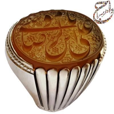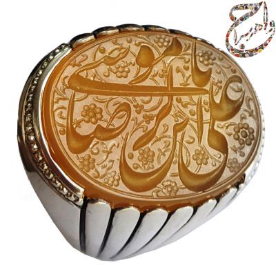 متاسفانه این محصول در حال حاضر موجود نیست . در صورت پسندیدن نوع و رنگ سنگ ، متن حکاکی ، سبک و شیوه ی طراحی و حکاکی و همچنین مدل رکاب ، میتوانید نسبت به سفارش ساخت انگشتری مشابه به این انگشتر توسط سایر اساتید محترم حکاک و رکاب ساز اقدام فرمایید . برای مشاهده ی تعرفه و هزینه ی ساخت انگشتر دست ساز به بخش تعرفه ها مراجعه کنید . همچنین میتوانید با ارسال پیام در شبکه های مجازی با شماره ( 09190670057 ) نسبت به سفارش محصول مشابه اقدام کنید .