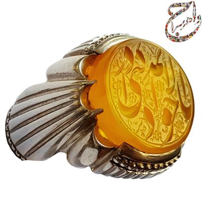 خواص و فضائل بسیاری از جانب معصومین علیهم السلام در خصوص در دست داشتن انگشتر عقیق زرد وارد شده است که یکی از آنها وسعت رزق و روزی است . استاد رضا قربانی به سفارش جواهرسرا اینتبار اقدام به حکاکی ذکر مبارک یا جواد الائمه ادرکنی بر روی عقیق زرد با تراش دایره ای با خط و حکاکی نستعلیق نموده است . تا تناسب معنای حکاکی که استمداد جستن از امام جود و اهل بخشش اهل بیت علیهم السلام حضرت امام جواد علیه السلام با خاصیت اصلی عقیق زرد که بیان شد وسعت رزق و روزی است بر قرار گردد .