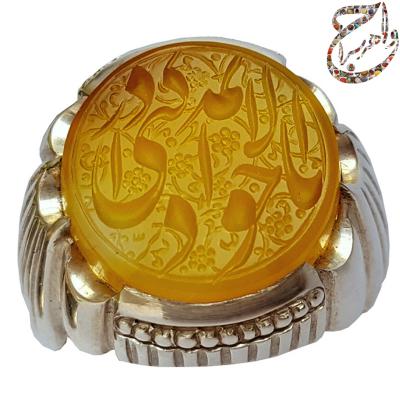 متاسفانه این محصول در حال حاضر موجود نیست . در صورت پسندیدن نوع و رنگ سنگ ، متن حکاکی ، سبک و شیوه ی طراحی و حکاکی و همچنین مدل رکاب ، میتوانید نسبت به سفارش ساخت انگشتری مشابه به این انگشتر توسط سایر اساتید محترم حکاک و رکاب ساز اقدام فرمایید . برای مشاهده ی تعرفه و هزینه ی ساخت انگشتر دست ساز به بخش تعرفه ها مراجعه کنید . همچنین میتوانید با ارسال پیام در شبکه های مجازی با شماره ( 09190670057 ) نسبت به سفارش محصول مشابه اقدام کنید .