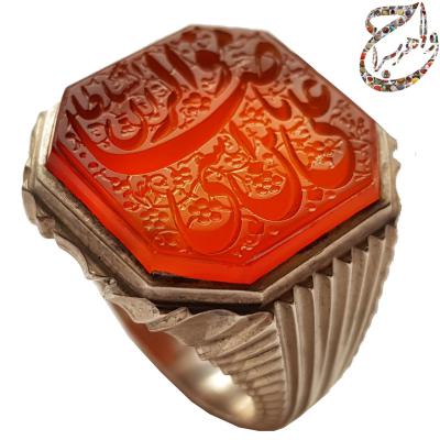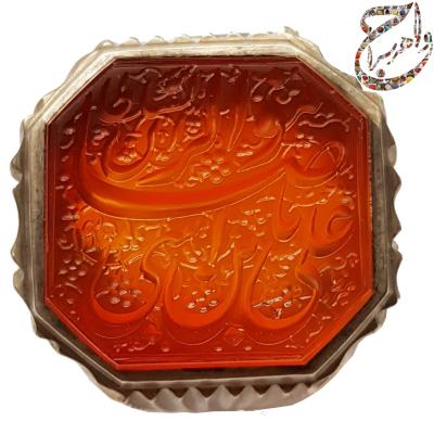 عقیق یمنی پرتقالی حکاکی استاد میرزا