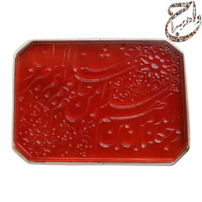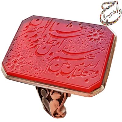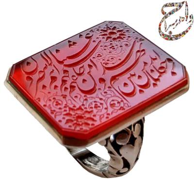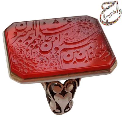 متاسفانه این محصول در حال حاضر موجود نیست . در صورت پسندیدن نوع و رنگ سنگ ، متن حکاکی ، سبک و شیوه ی طراحی و حکاکی و همچنین مدل رکاب ، میتوانید نسبت به سفارش ساخت انگشتری مشابه به این انگشتر توسط سایر اساتید محترم حکاک و رکاب ساز اقدام فرمایید . برای مشاهده ی تعرفه و هزینه ی ساخت انگشتر دست ساز به بخش تعرفه ها مراجعه کنید . همچنین میتوانید با ارسال پیام در شبکه های مجازی با شماره ( 09190670057 ) نسبت به سفارش محصول مشابه اقدام کنید .