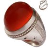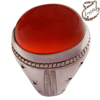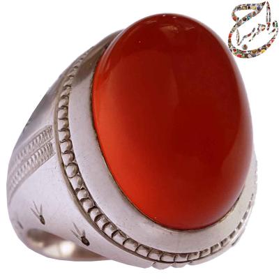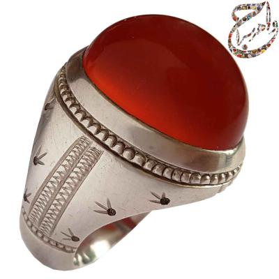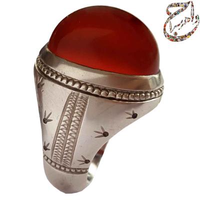 این انگشتر اصیل از نگین عقیق سرخ یمنی آبدار با تراش دامله بهره میبرد و رکاب نقره ی دست ساز نیز طوری دقیق و بدون ایراد ساخته شده که چشم انسان را خیره به خود مینماید .