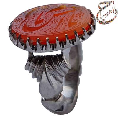 انگشتری که مشاهده میفرمایید از عقیق یمنی اصیل خط استاد رضا قربانی با امضاء حرّ مزین به ذکر مبارک یا امام حسن علیه السلام بهره میبرد . رکاب این انگشتر ساخته ی آقای عبدالله آذری با مهر آذری در داخل رکاب است .[/vc_column_text][vc_empty_space height=”20px”][/vc_column][/vc_row]
