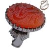 متاسفانه این محصول در حال حاضر موجود نیست . در صورت پسندیدن نوع و رنگ سنگ ، متن حکاکی ، سبک و شیوه ی طراحی و حکاکی و همچنین مدل رکاب ، میتوانید نسبت به سفارش ساخت انگشتری مشابه به این انگشتر توسط سایر اساتید محترم حکاک و رکاب ساز اقدام فرمایید . برای مشاهده ی تعرفه و هزینه ی ساخت انگشتر دست ساز به بخش (سفارش ساخت) مراجعه کنید . همچنین میتوانید با ارسال پیام در شبکه های مجازی با شماره ( 09190670057 ) نسبت به سفارش محصول مشابه اقدام کنید.