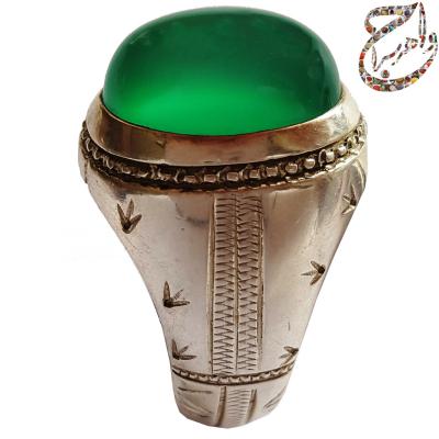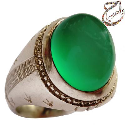 بحارالانوار، ج 8، ص 187؛ امالی، طوسی، ص 38[/vc_column_text][vc_empty_space height=”20px”][/vc_column][/vc_row][vc_row][vc_column][vc_column_text]انگشتری که مشاهده میفرمایید عقیق سبز ابدار معدنی است و نه آزمایشگاهی . رنگ سبز پر رنگ و شفافست سنگ بیانگر کیفیت است که مجالی برای تعریف و تمجید باقی نمیگذارد . رکاب این انگشتر بصورت دست از جنس نقره 95 ساخته و پرداخته شده است . داخل رکاب مهر سید تهران به چشم میخورد . سایز رکاب 64 است و بدلیل اتصال نقش و نگار رکاب بصورت سرتاسری امکان تغییر سایز وجود ندارد .[/vc_column_text][vc_empty_space height=”30px”][/vc_column][/vc_row]