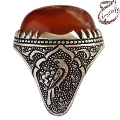 عقیق سرخ یمنی آبدار ، رکاب قلمزنی ساعیa321jw