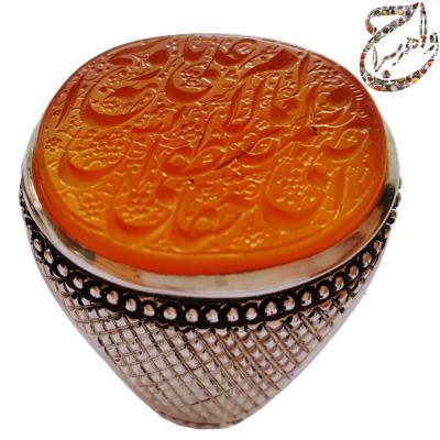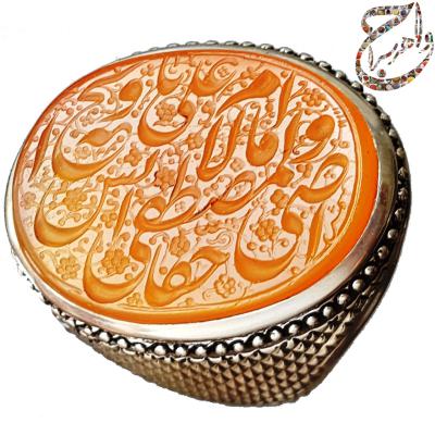 انگشتری که مشاهده میفرمایید عقیق یمنی خطی با حکاکی استاد مهدی شمس زنجانی مزین به شعر زیبای علی حبه جنه قسیم النار و الجنه وصی المصطفی حقا امام الانس و الجنه میباشد.