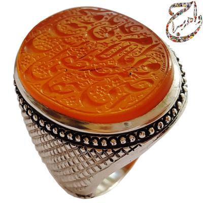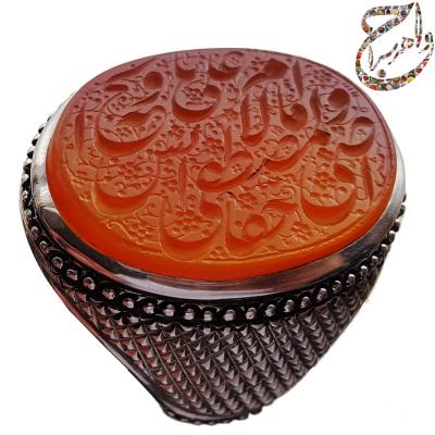 متاسفانه این محصول در حال حاضر موجود نیست . در صورت پسندیدن نوع و رنگ سنگ ، متن حکاکی ، سبک و شیوه ی طراحی و حکاکی و همچنین مدل رکاب ، میتوانید نسبت به سفارش ساخت انگشتری مشابه به این انگشتر توسط سایر اساتید محترم حکاک و رکاب ساز اقدام فرمایید . برای مشاهده ی تعرفه و هزینه ی ساخت انگشتر دست ساز به بخش تعرفه ها مراجعه کنید . همچنین میتوانید با ارسال پیام در شبکه های مجازی با شماره ( 09190670057 ) نسبت به سفارش محصول مشابه اقدام کنید .