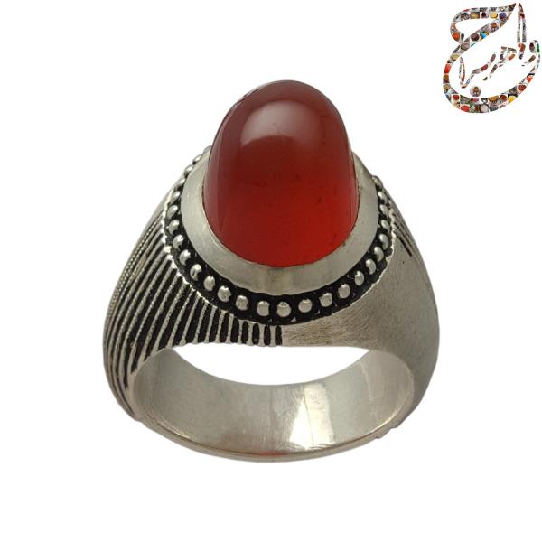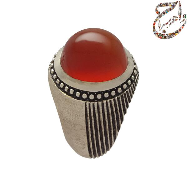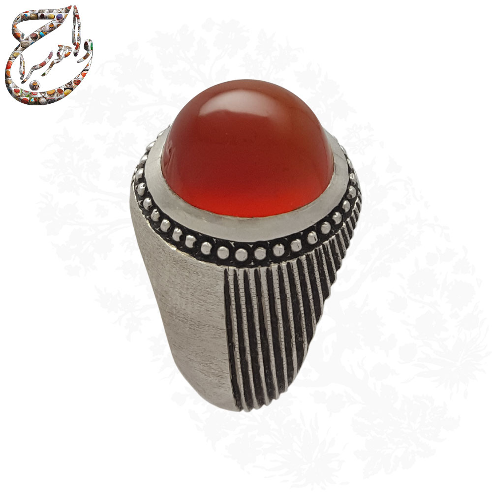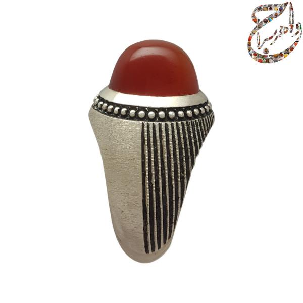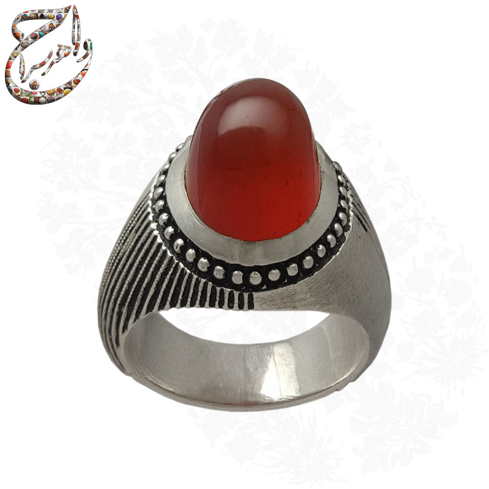 سنگ عقیق یمنی آبدار اصیل که به علت رنگ جذاب و زیبای خود وشفافیت بالا که به عنوان عقیق آبدار شناخته میشود از جمله سنگهای پرطرفدار بوده است. تراش دامله و برجسته این عقیق باعث جلوه بیشتر سنگ در انگشتر شده و نبود حکاکی بر روی آن زیبایی طبیعی و اصالت آن را بیشتر به رخ بیننده میکشد. این نوع از تراش همچنین باعث محافظت بیشتر آن نیز میگردد.