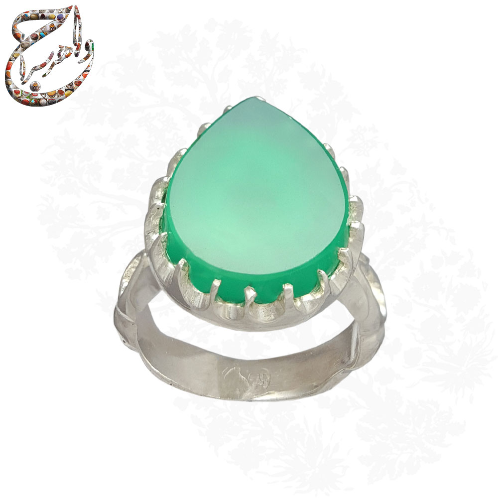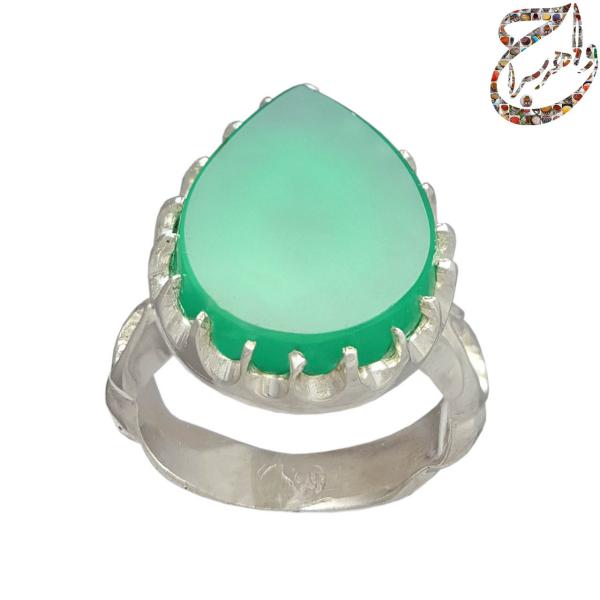 انگشتر عقیق سبز تراش اشکی با رکاب دست ساز تهران سیدیa420jw