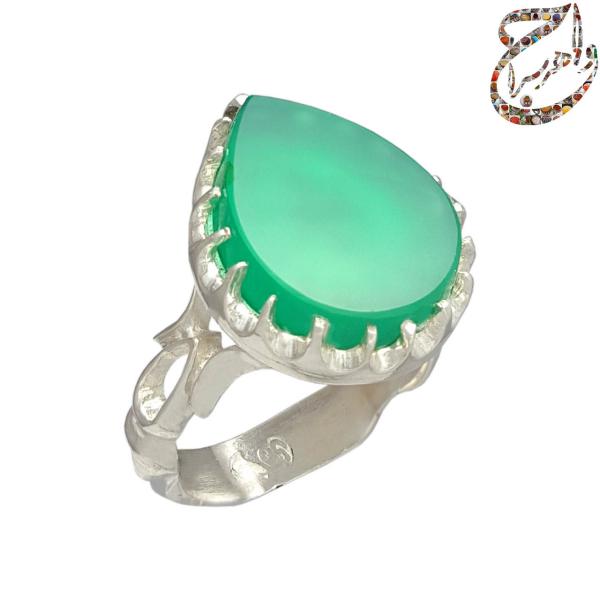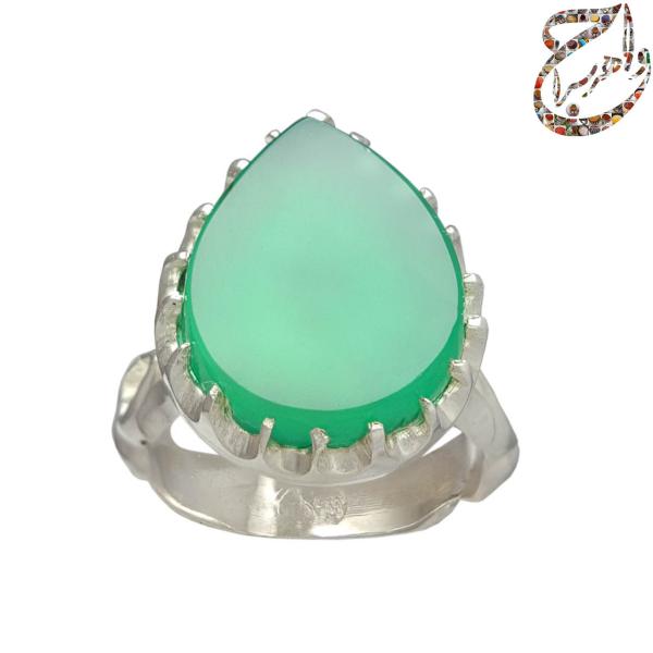 نقد و بررسی : انگشتر عقیق سبز تراش اشکی با رکاب دست ساز تهران سیدی