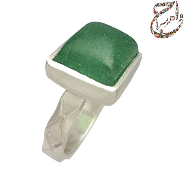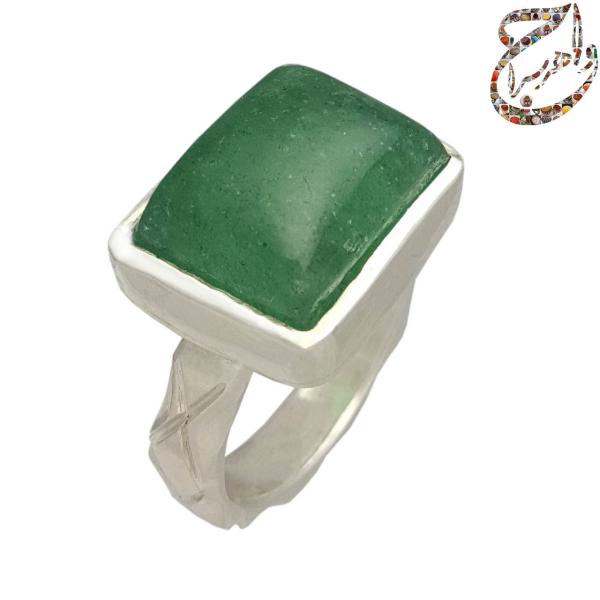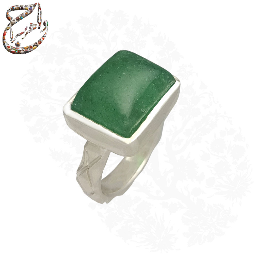 انگشتر کم نظیر کوارتز سبز یا به قول معروف درّ فاطمی اعلاء با رکاب نقره دست ساز با مهر تهران سیدی در جواهرسرا
