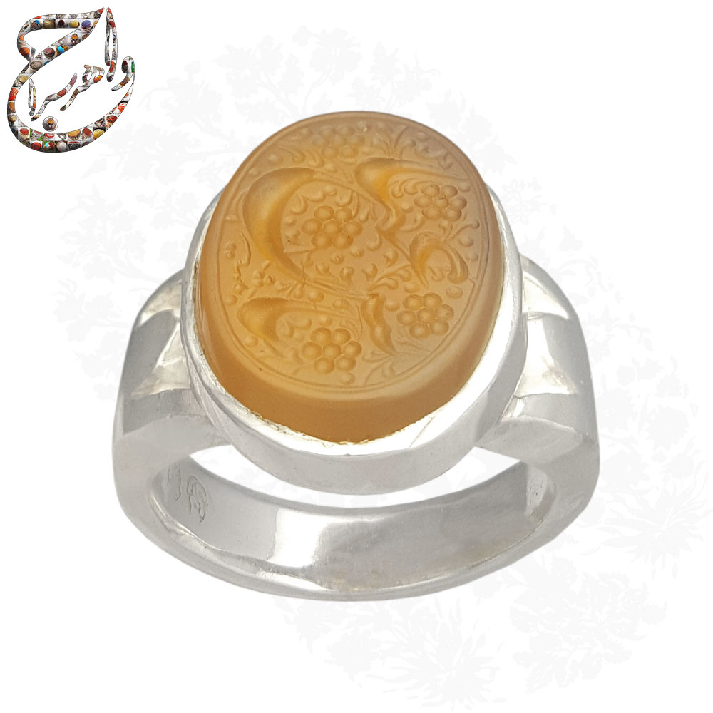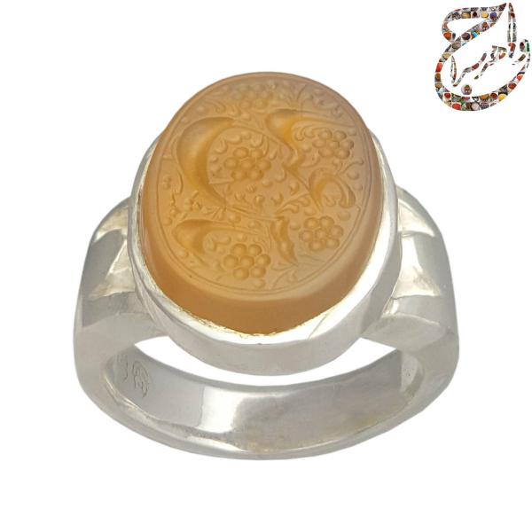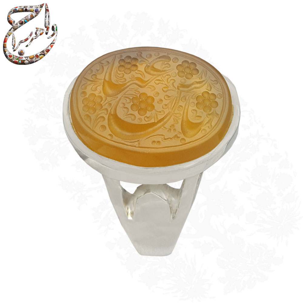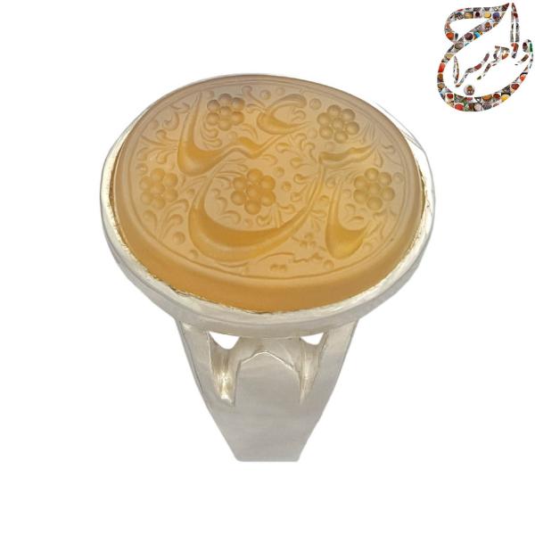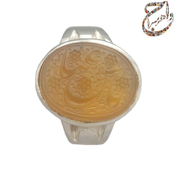 انگشتر عقیق جزع خط استاد متین مزین به یاعباس علیه السلام با رکاب نقره دست ساز با مهر تهران سیدی در جواهرسرا
