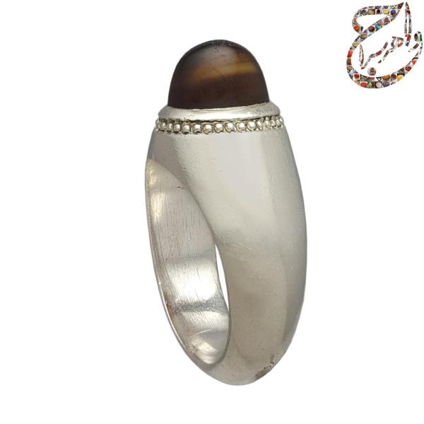 انگشتر عقیق کهنه یمنی تراش دامله بدون حکاکی . رکاب نقره دو تکه دست ساز به شیوه ی خاک ماسه با مهر بصیری به وزن 12 گرم و سایز 61 با قابلیت تغییر سایز .